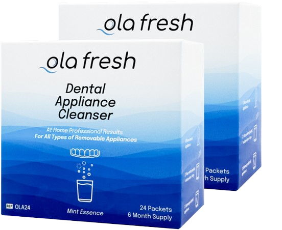 Keep your beautiful smile, and get your retainer, aligner, nightguard, or sportsguard sparkling clean with ease. In as little as 5 minutes Ola Fresh removes stains, plaque, tartar, foul odors and bad tastes without damaging your appliances! Through extensive testing our oxygen based dental appliance cleanser has proven to remove even the toughest stains from virtually all types of dental appliances.