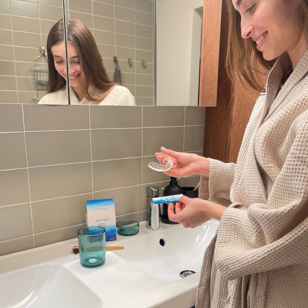 Like your natural teeth, your dental appliance needs daily care. Soak your appliance in Ola Fresh solution beginning the day you receive it to keep it clean and fresh; and your mouth healthy!